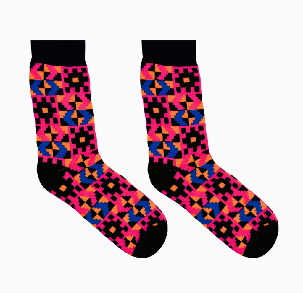 Cosy season has arrived with these chunky winter socks in Afropop's signature style.