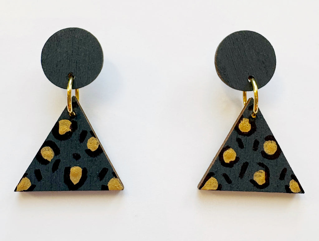 Hand painted plywood dangle studs, lightweight and easy to wear.