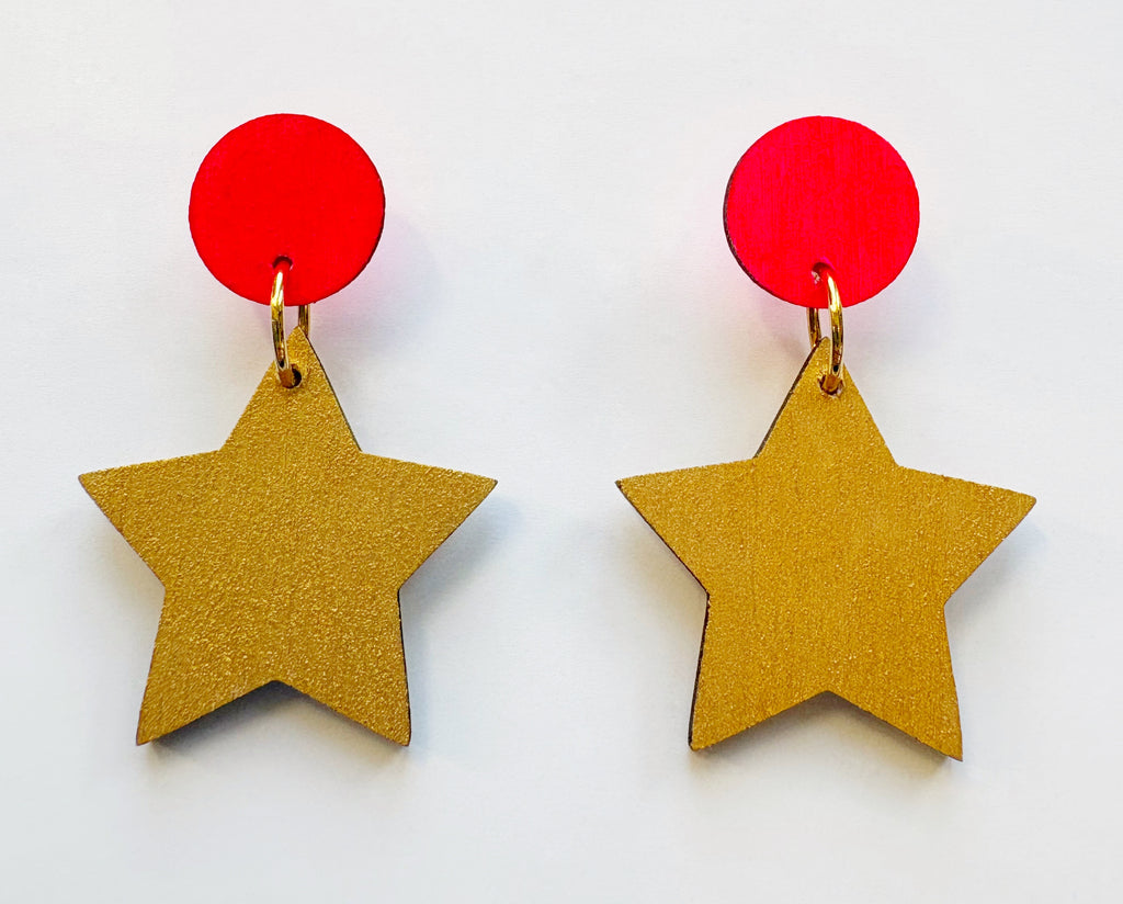 Hand painted plywood dangle studs, lightweight and easy to wear.