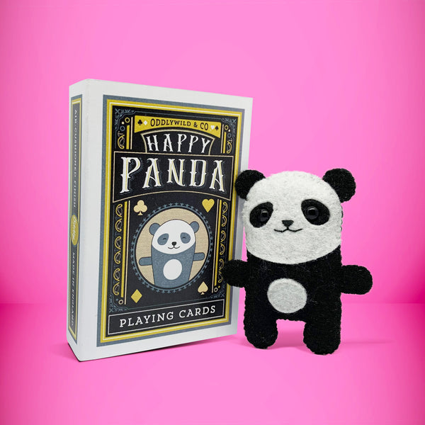 Cute felt Panda in a card box. Inside the box is his comfy bed complete with pillow and blanket.