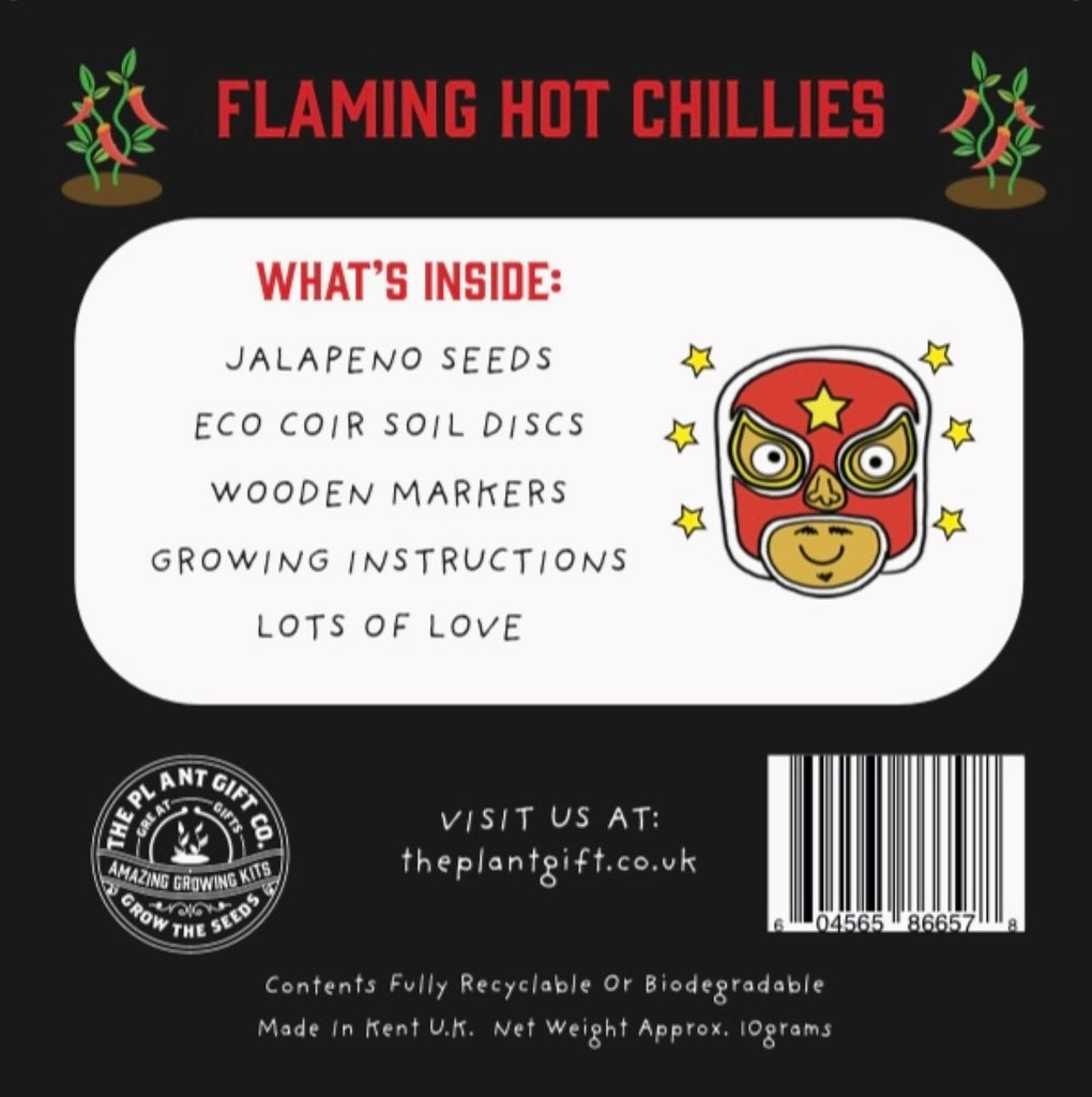 What’s in the Kit? - Packet of hot and spicy chilli seeds to blow your socks off Jalapeño - Step-By-Step beginners sowing guide - wooden plant markers - Coir soil discs