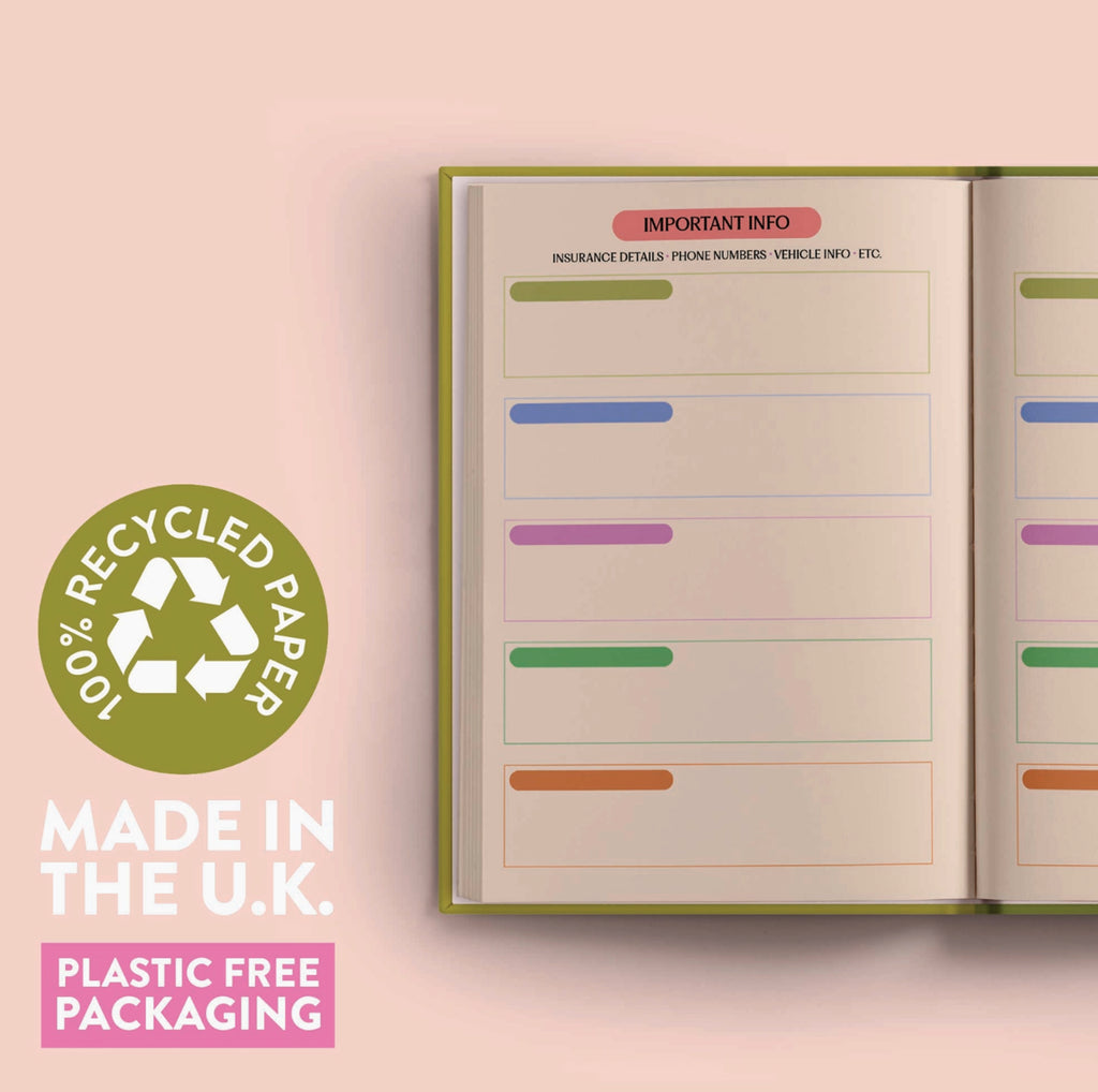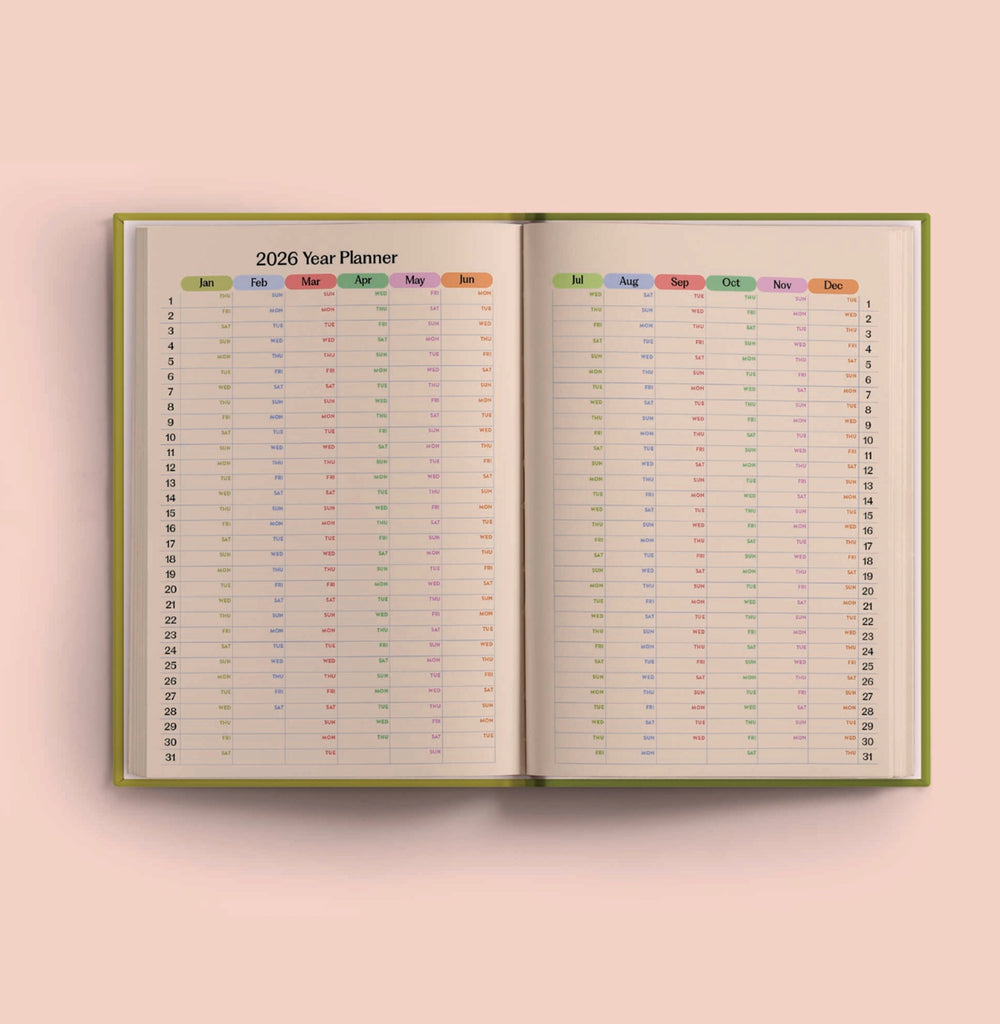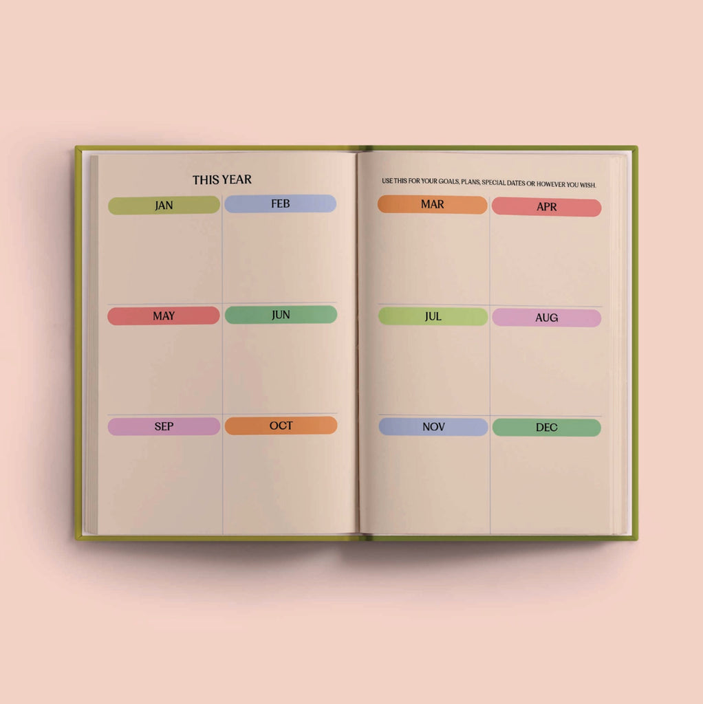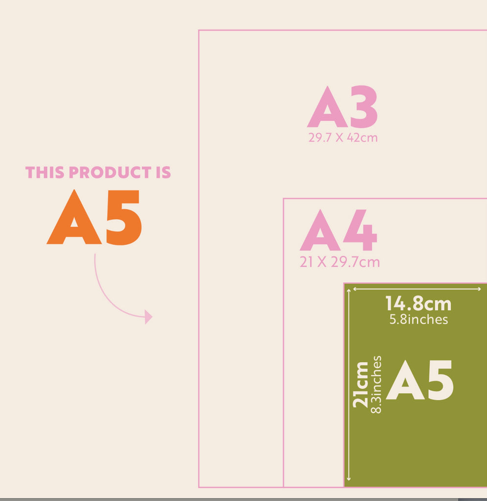 A bold floral design with oversized shapes and offbeat colour clashes – inspired by 60s print, vintage textiles and a love of maximalism. Compact but generous, it’s a great pick for gifting, planning, or everyday desk use. Plastic-free and planet-considered, as always.